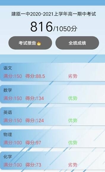 看哪些科目成绩比较高,可以查询排名和私考成绩;