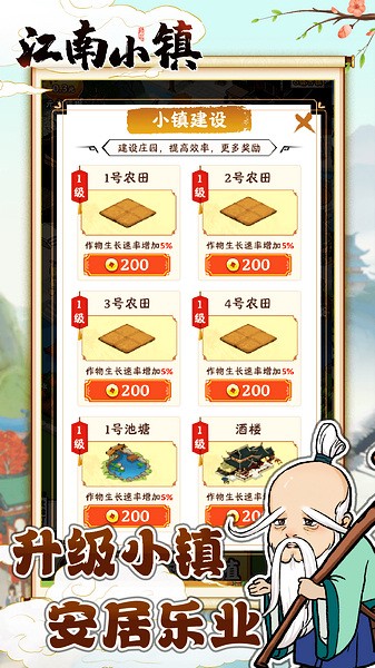 江南小镇游戏是一款别具风情的模拟经营手游,如同一幅唯美画卷,在游戏世界中诠释着恬静的田园风光。于美不言而喻的景色间,你即将拥有一片属于自己的良田小镇。在这里,你将扮演着经营者的角色,经营着酒楼、招待四海宾客。在指尖的触碰下,种田的乐趣尽在掌握,渔具的嘎然作响,鱼粮丰盈,仙鹤飞礼而至。原来农田生活,也可如此悠然自得。