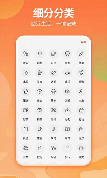 番茄记账本为你贴心的准备了各种收支的图标,不管是你购物还是吃吃吃都可以用图标来记录你的收支,直观展示收支状况。