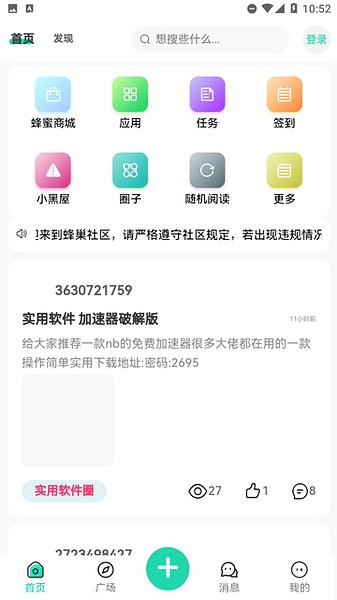 1、蜂巢社区整个界面也是相当简洁,需要内存非常的小,直接打开手机就可以流畅运行使用了。
