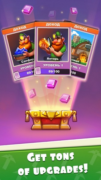 3、打造你的侏儒挖掘者帝国,成为最伟大的闲置大亨!模拟时间以更快地实现目标。离线收集闲置金币,获得特殊卡并升级您的地雷。