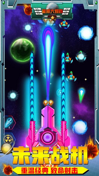 《星球大爆炸》是一款经典的空战射击游戏,玩家可以驾驶各种战机,在宇宙中穿梭躲避攻击并反击敌人。游戏中有超多酷炫特效和武器组合,还能升级战机完成任务成就。评测提到这款游戏将经典玩法与绚丽视觉效果结合,每次玩都像踏上探险之旅,弹幕和爆炸特效让人兴奋不已。飞机种类多样,每架都有独特攻击模式,解锁新飞机就像获得新装备。任务系统和成就体系增加了游戏的可玩性,每日任务还能快速赚取金币升级飞船。星球大爆炸不仅是一款游戏,更是闲暇时光追逐刺激与乐趣的舞台,真的超刺激!