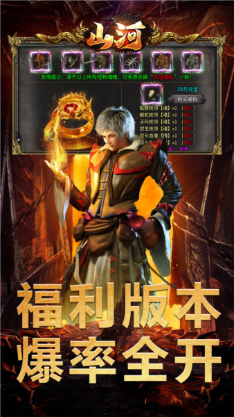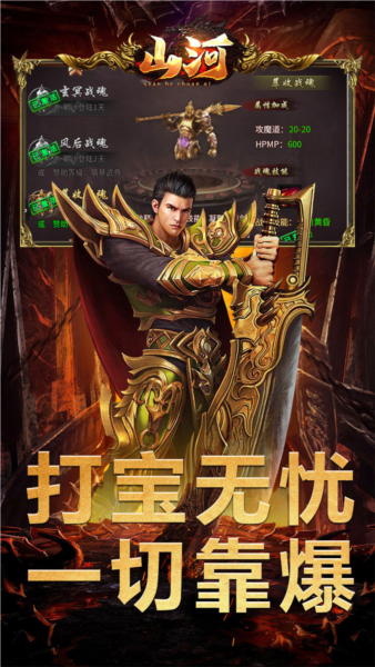 山河中除了以上主要获取方式,更有野战、王者争霸等热情pk方式获得装备,而且,直接从对方身上抢夺装备,是不是更有成就感!更多玩法等你来探索。