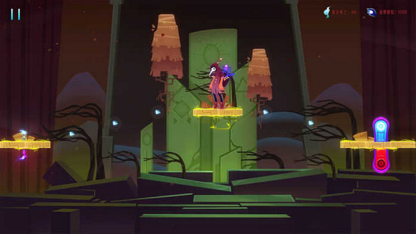 在游戏中,你的每一次操作,主角和他的影子都会做出方向完全相反的动作,依照重力原则,蓝色主角向上跳跃向下掉落,粉色影子向下跳跃向上降落。