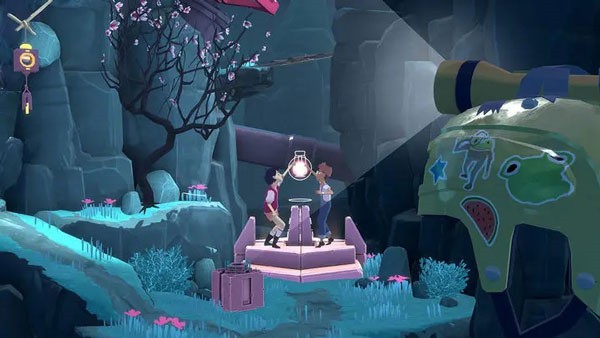 4、Arina和Frendt都有自己的个性和技能,在游戏设计和行为上都有体现。Frendt不像Arina那么健壮大胆,他身材瘦长,戴着眼镜,对电子产品的兴趣要大得多。他能够与编钟互动,编钟的作用很像开关,可以让你在环境的某些部分向前移动时间,改变一组选定的对象,同时保持游戏角色不动。Arina是一个外向而热情的人,通常在前面带路,当她不能得到吸引她注意力的东西时,她就会生气。她提着一盏灯笼,点亮后可以驱散可能挡住去路的乌云。
