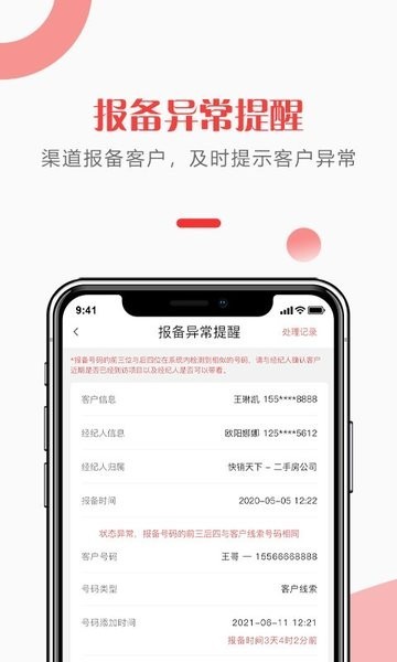 渠道报备客户系统自动查询判客,提醒报备异常情况,案场人员审核是否允许报备。