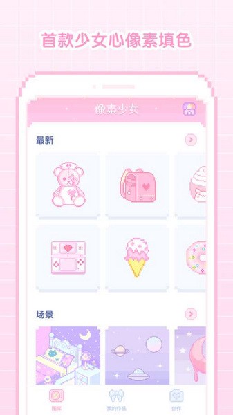 像素少女游戏是一款有趣的像素填色游戏,超多粉色系的图案内容和精彩休闲的治愈玩法能够让玩家们在这里得到放松。像素少女还会每天为玩家们更新填色素材,大家不仅能够记录自己的上色过程,也可以将在制作完成的图片来当做头像使用。游戏中还有各种可爱的二次元人物和小动物,海量的软萌素材和粉色系内容让大家的少女心扑通扑通跳个不停。