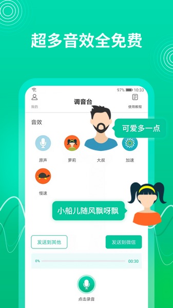 2、专业变声器,支持多种变声音效,例如:大叔、萝莉、老人、正太等等;