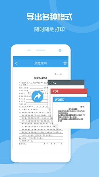 5、【便捷】文书可导出Word、PDF、JPG等格式,支持蓝牙、WiFi和OTG有线连接打印机