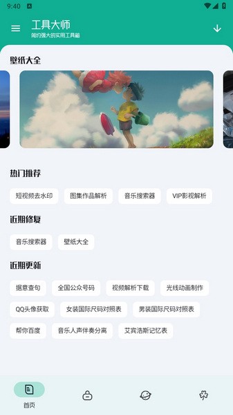 工具大师app是一个装满了各种实用小工具的软件,功能超级多,从图像处理到视频解析,再到桌面壁纸,几乎都能在这里找到。用户可以根据自己的需求选择工具,满足大部分日常使用的需求。现在已经有上百种工具了,而且还会不断更新,体验感越来越好。