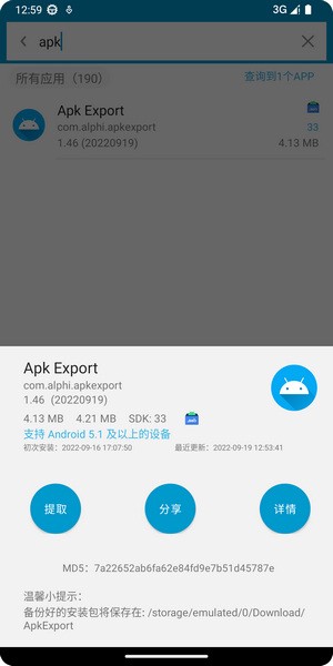 7、超级提取(应用分享到APKExport时提取该应用的apk),详细介绍见应用内帮助菜单;