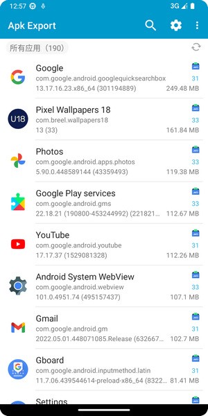 2、直接导出用户应用与系统应用的APK文件并分享;
