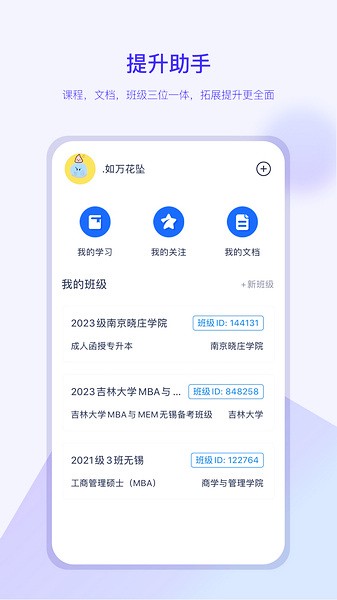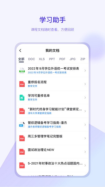 3、生活助手:课程、文档、班级三位一体,拓展提升更加全面。