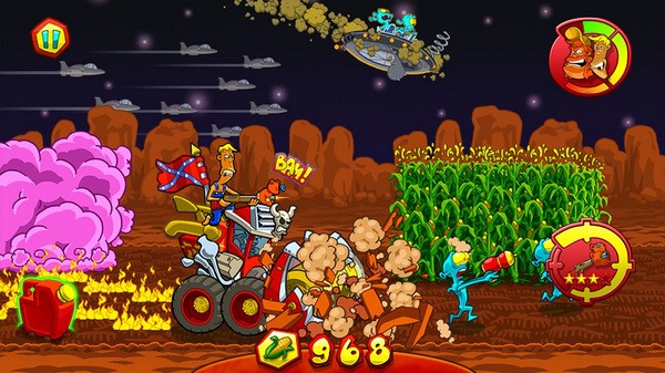 入侵农场USA手游是一款超好玩的休闲益智类的塔防类手游,游戏中玩家们拥有一片玉米地,但是不幸的是这款玉米地被一群外星人盯上了,为了对付这些外星人,保护自己的玉米地,玩家们需要尽全力将他们赶出自己的玉米地,恢复玉米地原来的样子。游戏中为玩家们提供了粉碎机、收割机等等器具,大家可以开启玉米收割机来杀死这些外星人。游戏玩法简单,但是过程中充满了非常多的趣味,感兴趣的玩家可以下载体验!