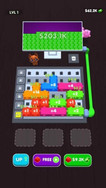 按钮狂热破解版是一款挺有意思的休闲游戏,玩法简单但又有挑战性。游戏里的数字方块五颜六色,玩家需要把它们移动到合适的位置,尽量让同色的方块挨在一起合并升级。一开始看起来挺简单的,但随着关卡难度增加,布局安排会越来越考验你的耐心和策略。破解版的好处就是没有广告干扰,可以尽情享受游戏。
