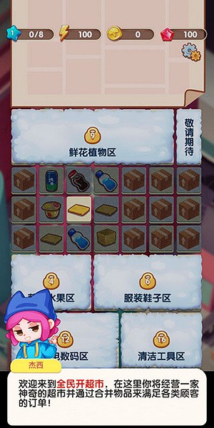 1、打开进入游戏,在这里你将经营一家超市,你需要通过合并物品来满足各类顾客的订单