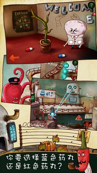在游戏结束时,选择红色或蓝色药丸会导致不同的结局。请仔细选择。当所有的结局都通过时,它将进入一个秘密关卡。给玩家一个特别的惊喜和结局。