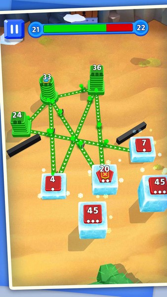 占领那个城是一款规则很简单,但是想要获得胜利却很有难度的策略游戏,它的玩法是非常直观的,可以说是纯粹的数值比拼,玩家需要在地图上派遣自己的部队,只要点数大于目标城市即可占领,占领之后就会不断增长点数,以此来占领全部的城市并获得胜利。这里提供了超多关卡,并且难度会逐渐增加,最后出现的势力也会变多,可以带来多方会战的乐趣。