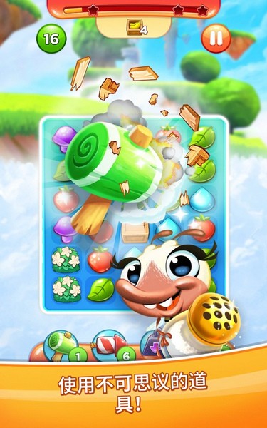 百变道具助力闯关,多重组合搭配,快乐冒险更有爱!来一发火药炸弹,全屏消除引爆华丽特效超快感!