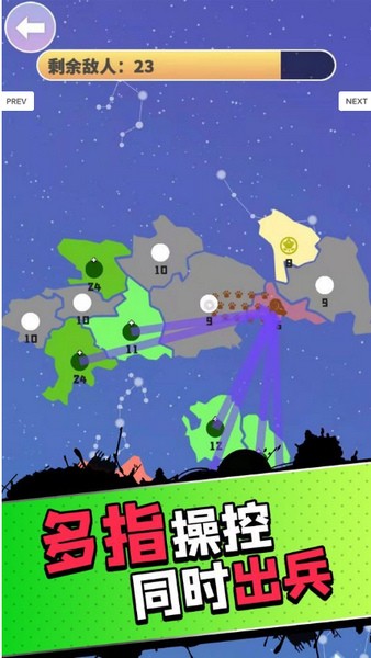 1、游戏刚开始只选一个敌人比较容易上手也很简单,只要将所有的点数拿去扩张很快就赢了。