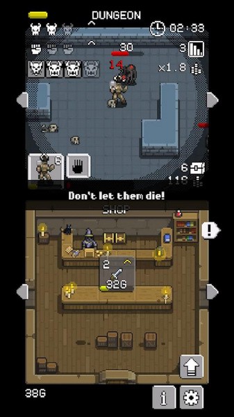 这是一款像素风格的地牢冒险手游,玩家不再是打斗的勇士,而是开地下城小店的商人。你需要收集各种材料制作商品,在地牢里摆摊赚钱。游戏玩法简单,主要是放置点击,通过不断积累收益来购买装备武器,体验有趣的地牢冒险。