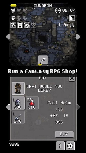1、购买和出售武器、盔甲、药水等,以发展您的简陋商店。
