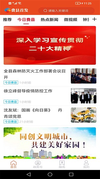 【专栏设置】费县首发设置了今日费县、热点新闻、微视频、直播等专栏。