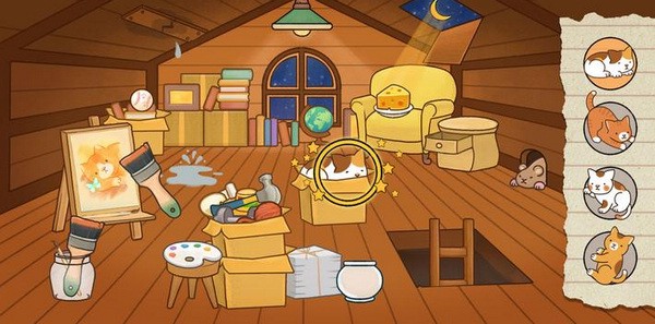 2、寻找各个场景里被隐藏的可爱猫咪,非常考验玩家的眼力和观察能力;