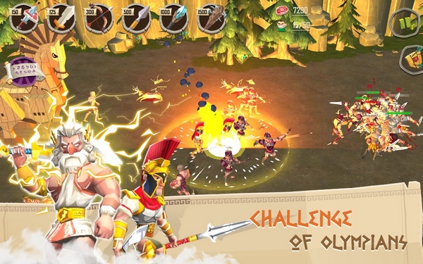 游戏模拟了这场战争。您带领希腊军队征服了特洛伊,夺回了海伦。穿越每个领土,您将收到更多类型的部队,使用硬币为神灵装备神器以增强力量。在每场战斗中,您都必须平衡食物和训练部队,使用特洛伊木马作为防御堡垒,或使用魔法书的魔法摧毁敌人的塔。