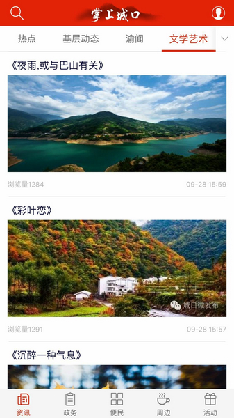 1、打开资讯列表,可以第一眼看到城口本地新闻