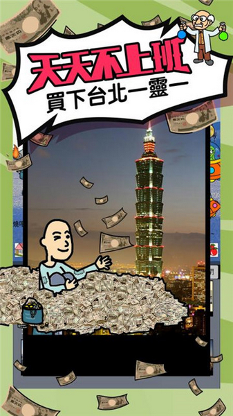 天天不上班是史上超爆笑懒人模拟经营放置类娱乐休闲游戏,指引你前往懒人不工作,成为亿万大富翁的世界,你什么都不用做,只需点点点就能买下全世界、迈向人生巔峰成为大富翁!游戏脑洞大开的设计,成为绝世大富翁的秘密就在这里!上天赐予你伸手来钱的能力,千万不要白白浪费了!丰富的模拟角色扮演、养成与爆笑剧情,告诉你各行各业上班工作都不简单,快去收集所有的故事及爆笑卡片吧!