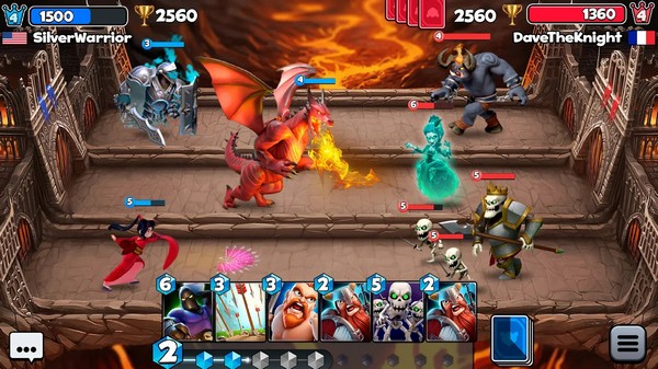 2、赢取奖杯,争夺全球排名,打开宝箱来发现和解锁强大的勇士和法术,你能获得稀有的传奇卡牌;