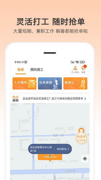 抢单模式:求职更高效,招聘快人一步,基于地理位置的人岗智慧匹配。