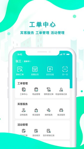 1.APP酒店员工与客人服务互动,客人在线呼叫服务,员工及时收到服务工单,任务清晰无遗漏。