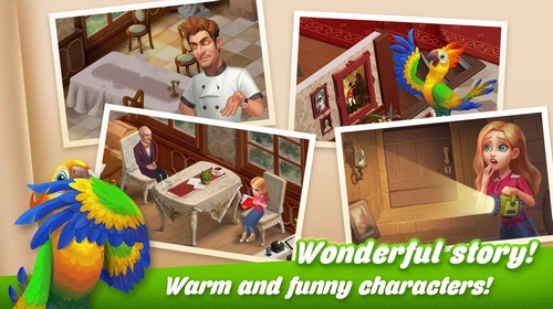 游戏画面清新可爱,采用欧美卡通风格,玩家可以自由装饰餐厅的每一个角落,比如更换墙纸、沙发、吧台等。游戏还结合了独特的三消玩法,制作四边形纸飞机并匹配瓷砖来增加图层,非常有趣。此外,还有主线剧情和特殊事件,增加了游戏的趣味性和挑战性。