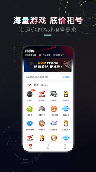 4.全品类的游戏覆盖——提供当下热门游戏(王者、lol、和平精英等)、火爆新游的账号出租