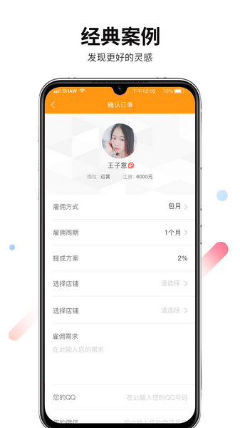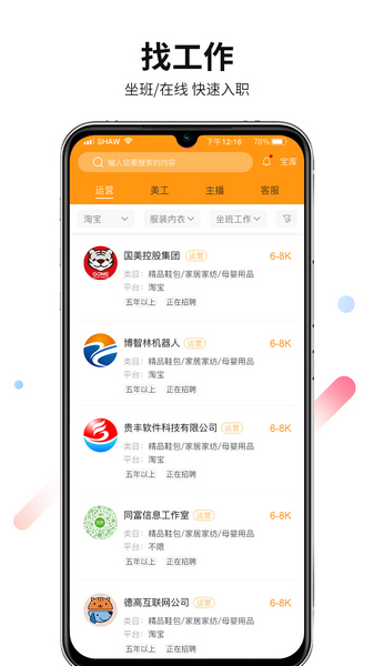 《君臣论》是为电商、新媒体等互联网企业提供主播、车手、推广、运营、美工、客服等互联网运营技术人才。企业可通过《君臣论》招聘人才、托管工资、远程工作、管理员工、发放工资等移动办公功能,在《君臣论》上享受人才招聘,在线雇佣,远程工作、移动办公等一体化的人才招聘雇佣服务。