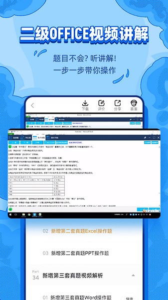 2、丰富的题库,选择题440道,基本操作题、字处理题、电子表格题、演示文稿题、上网题共595套。