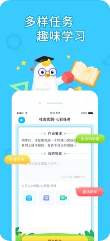 旨在通过技术支持老师、学生和家长进行有效沟通互动、让任务多元化创新,促进家校共育、习惯养成以及核心素养提升。