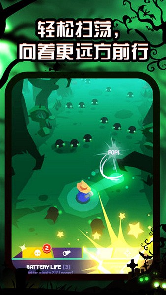 游戏里的亮点很多,比如在幽深的月夜密林中冒险,用单手滑动屏幕点亮灯光照亮四周,还要不断躲避袭来的鬼怪。电力耗尽时需要等待才能再次点亮,努力消灭所有拦路怪物才能到达更远的地方。