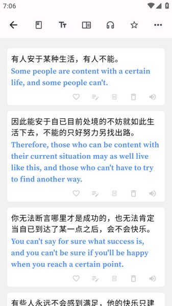 阅读时支持长按划词翻译或单击单词翻译,会员支持单词收藏以及高亮显示。