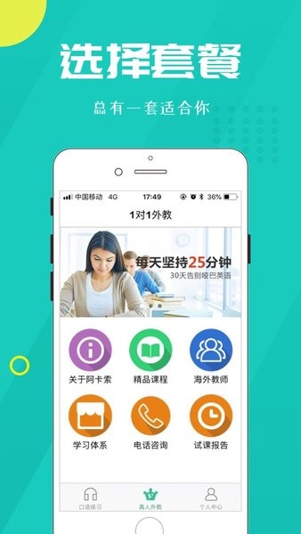 为了满足学习者的各种不同需求,无论您是都市白领、家庭主妇或者是在校学生,只要您需要提升英语口语水平,阿卡索会为您量身定制个性化课程。