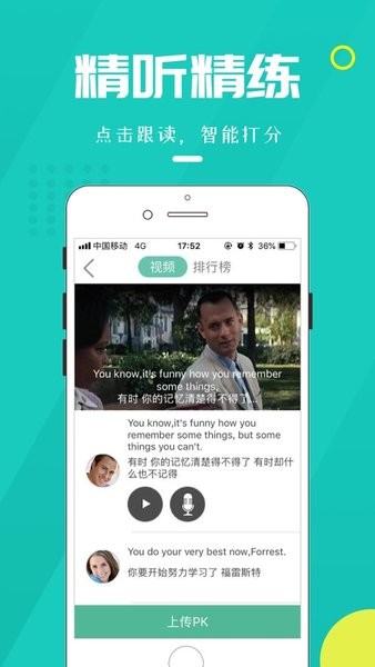汇聚了各类经典美剧、电影桥段、优美文章、进行英语口语跟读、智能打分、外教一对一在线视频教学的英语app,让你快速提升英语口语、听力、语法、词汇、阅读的技能。