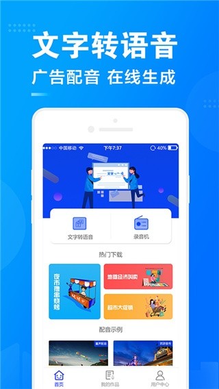 促销广告配音app是一款非常实用的文字转语音软件,可以快速把任意的文字转换成语音的形式播放出来,支持多种语言,而且提供了很多个性的音色可以选择,让你可以轻松制作出自己喜欢的语音音频。可以用于各种使用场景。同时这里还有海量的背景音乐可以选择,完成之后还能将其一键分享到各大社交平台的好友。