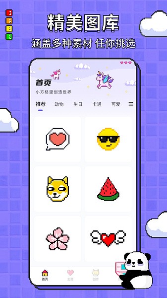 1、登录涂色龙app,点击上方的【像素涂色】;或是下方的【创作】进行涂色创作;