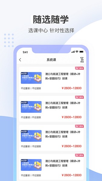 中建教育app是一款深耕职业教育领域多年的在线学习软件。这款软件可以让用户随时随地都可以打开学习,根据自己制定的学习计划来深入学习职业相关的课程,提升自己的职业技能水平。用户可以在软件中选择不同的职业考试科目来匹配对应的资源,最新最全面的课程教学资源会推送给用户,并且还有讲师直播提醒。此外,软件内的题库资源也会保持更新,收录最新的题目。