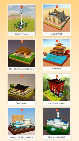 “Build N Chill”是一款休闲模拟拼装手游,让你从世界各地创建着名建筑物和地点。游戏以其独特之处而脱颖而出,将详细的3D模型集结在一组中,配以轻松的古典音乐,让你在探索中放松心情。在游戏中,你能发现世界闻名的建筑,感觉自己像是位专业建筑师。让你逐步在音乐的伴奏下组装建筑物,创造出属于你的3D小世界。