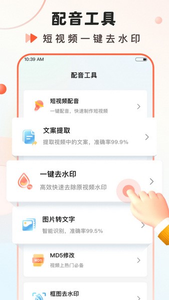 文案提取,去水印,图片转文字,音频分割等满足多场景,全面提升办公效率;