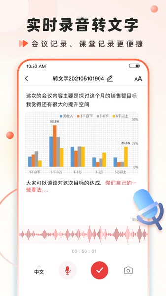录音实时转写,解放双手超高效。支持录音与文字同屏对比,可转写汉语(多种方言)、英语、日语等多语言;