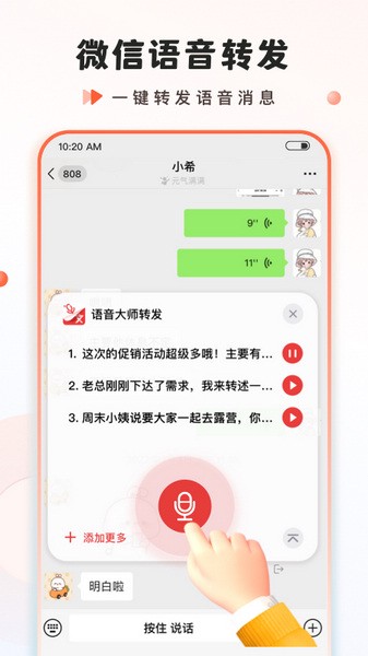 提供更方便的分享功能,在导出语音后一键进行转发和分享。
